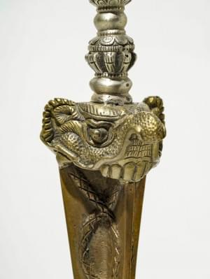 Bronze et métal à décor gravé de dragons, H 12,5 et 10 cm