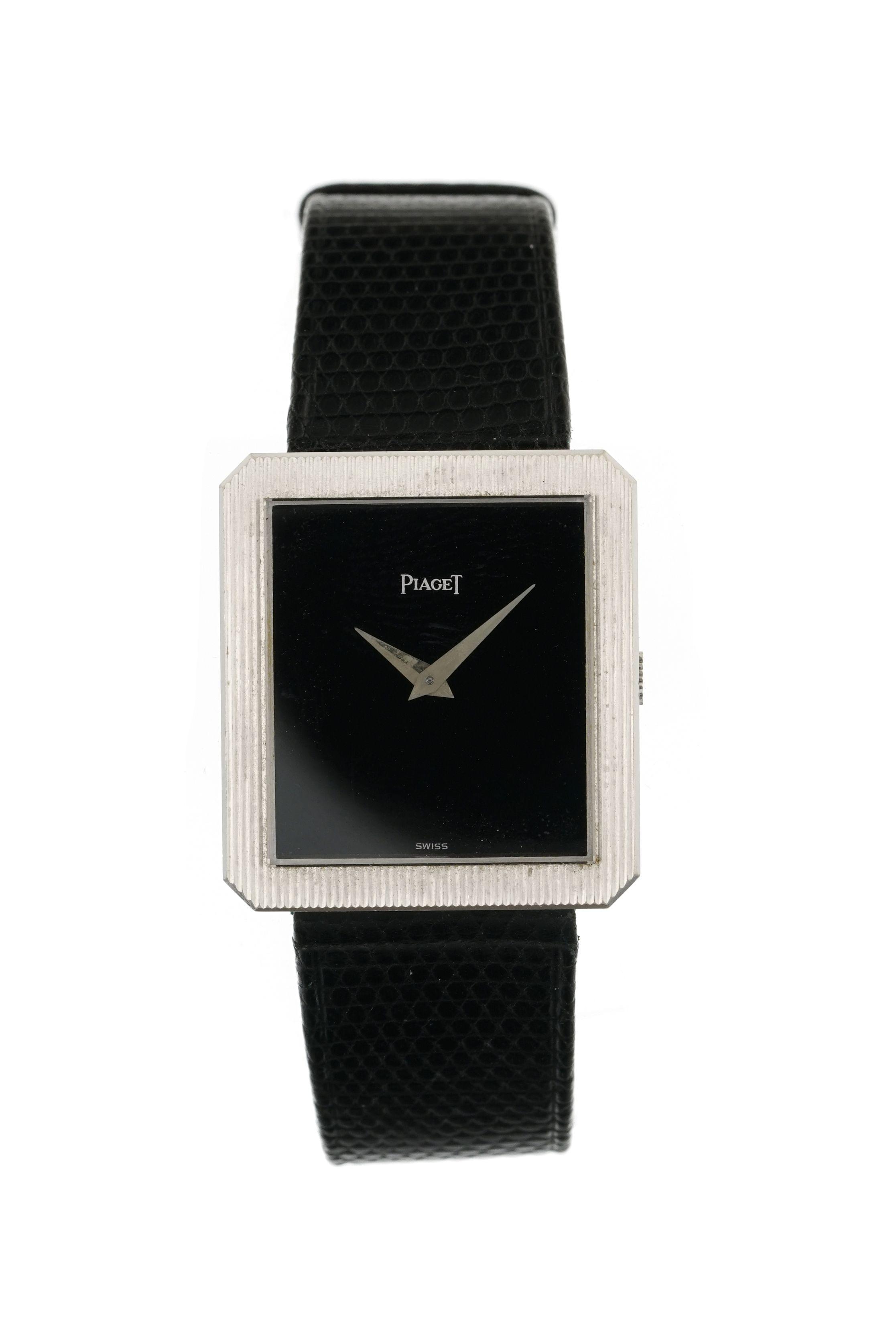 Cadran noir, aiguilles argentées, boîtier en or gris 750, 27x24 cm, poids brut 19 g