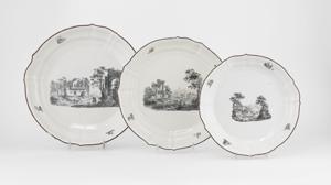4317. Trois plats ronds à décor en grisaille décalcomanié Zürich
