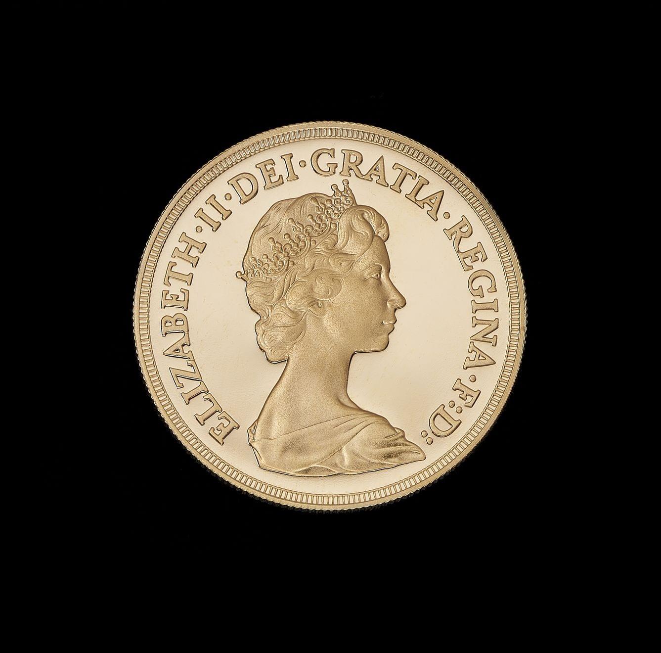 122. Pièce anglaise de 100 livres datée 1987 à l'effigie de la reine...