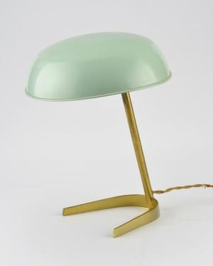 Tôle laquée bleue et laiton doré, circa 1950, H 41 cm