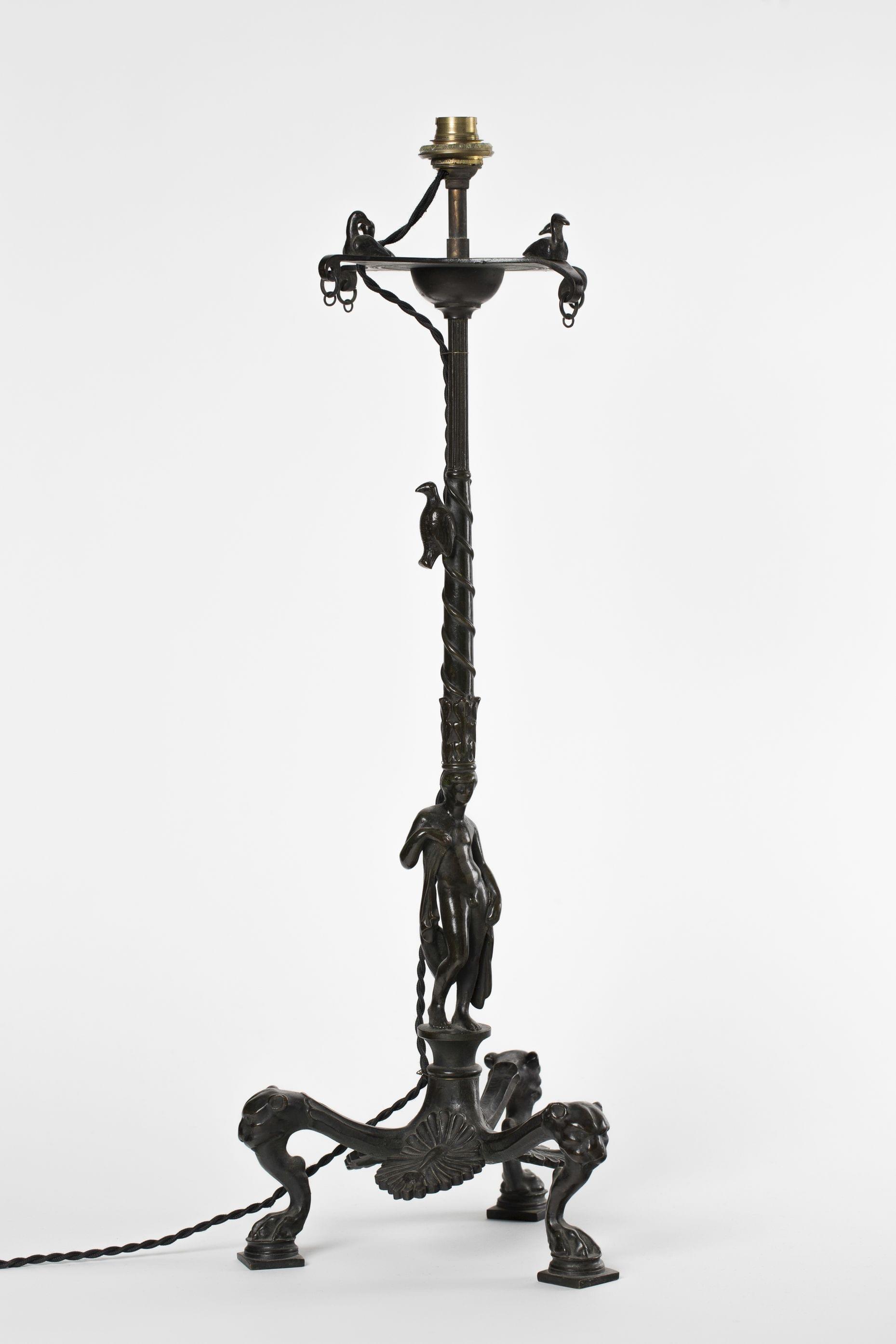 Bronze à patine brune et plaques de verre façon vitrail, H 50 cm