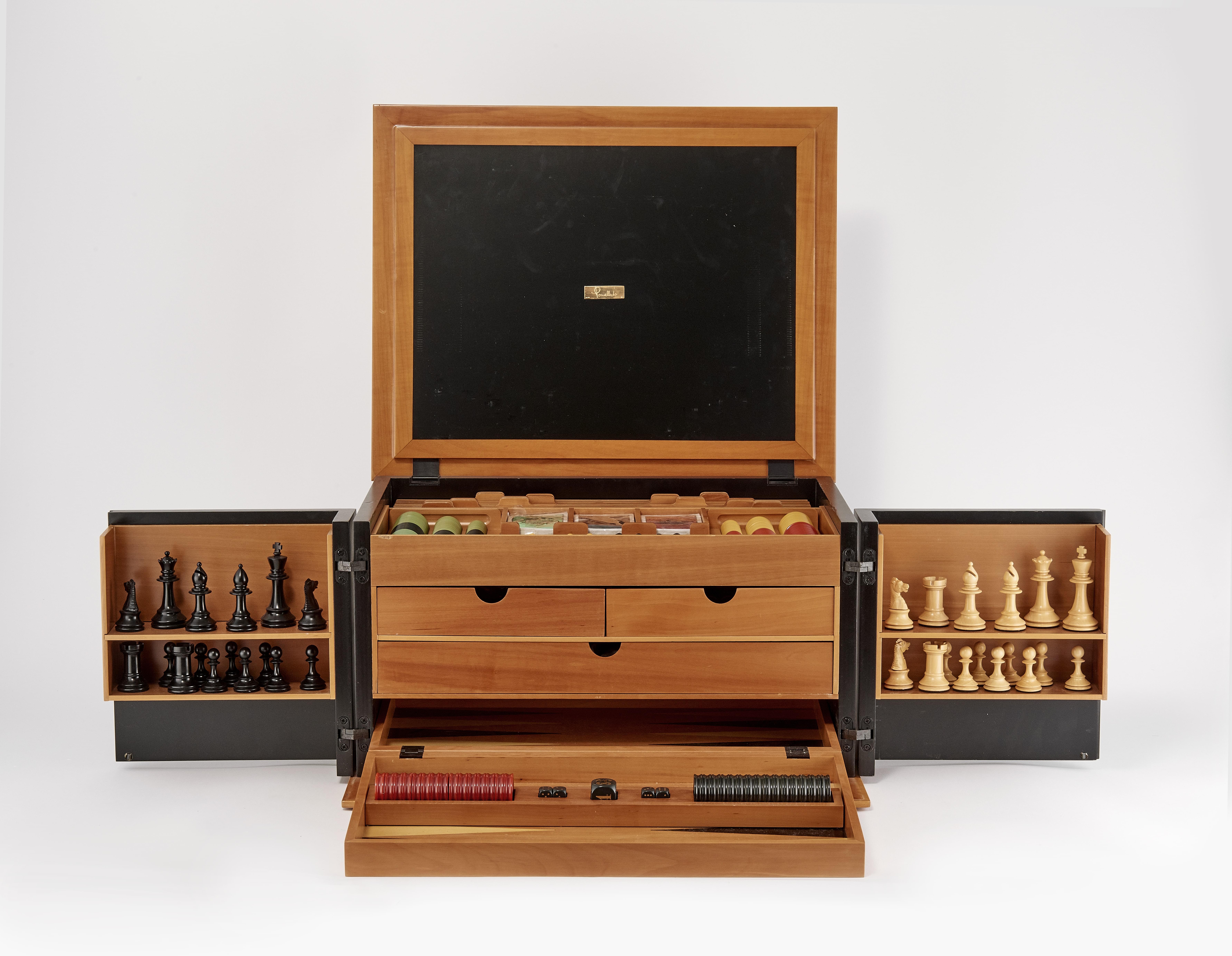Boîte à jeux, bois et résine, réalisée pour Pomellato, 1985, 25x47x38 cm
