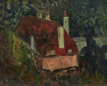Maison au toit rouge, huile sur toile, 50x60 cm