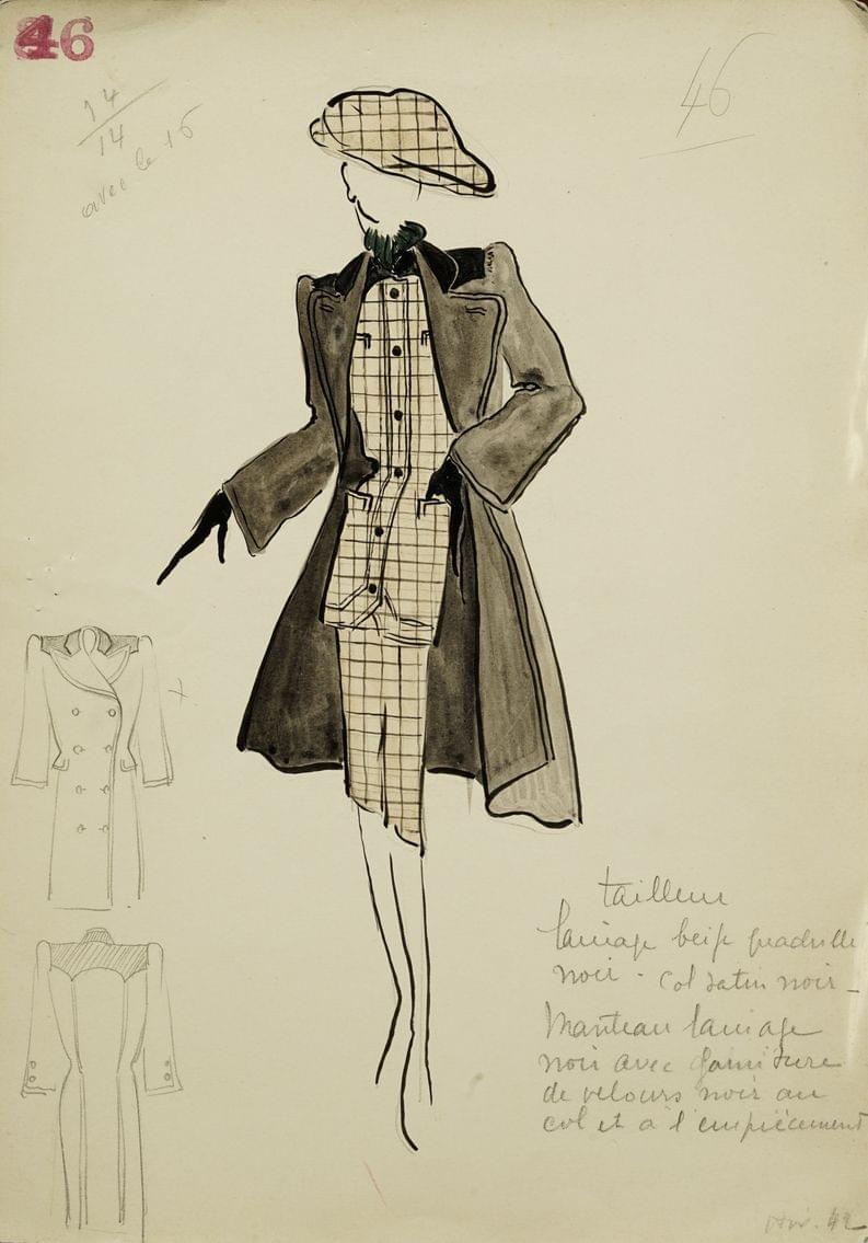 Croquis originaux de Haute couture, deux gouaches annotées, sign...