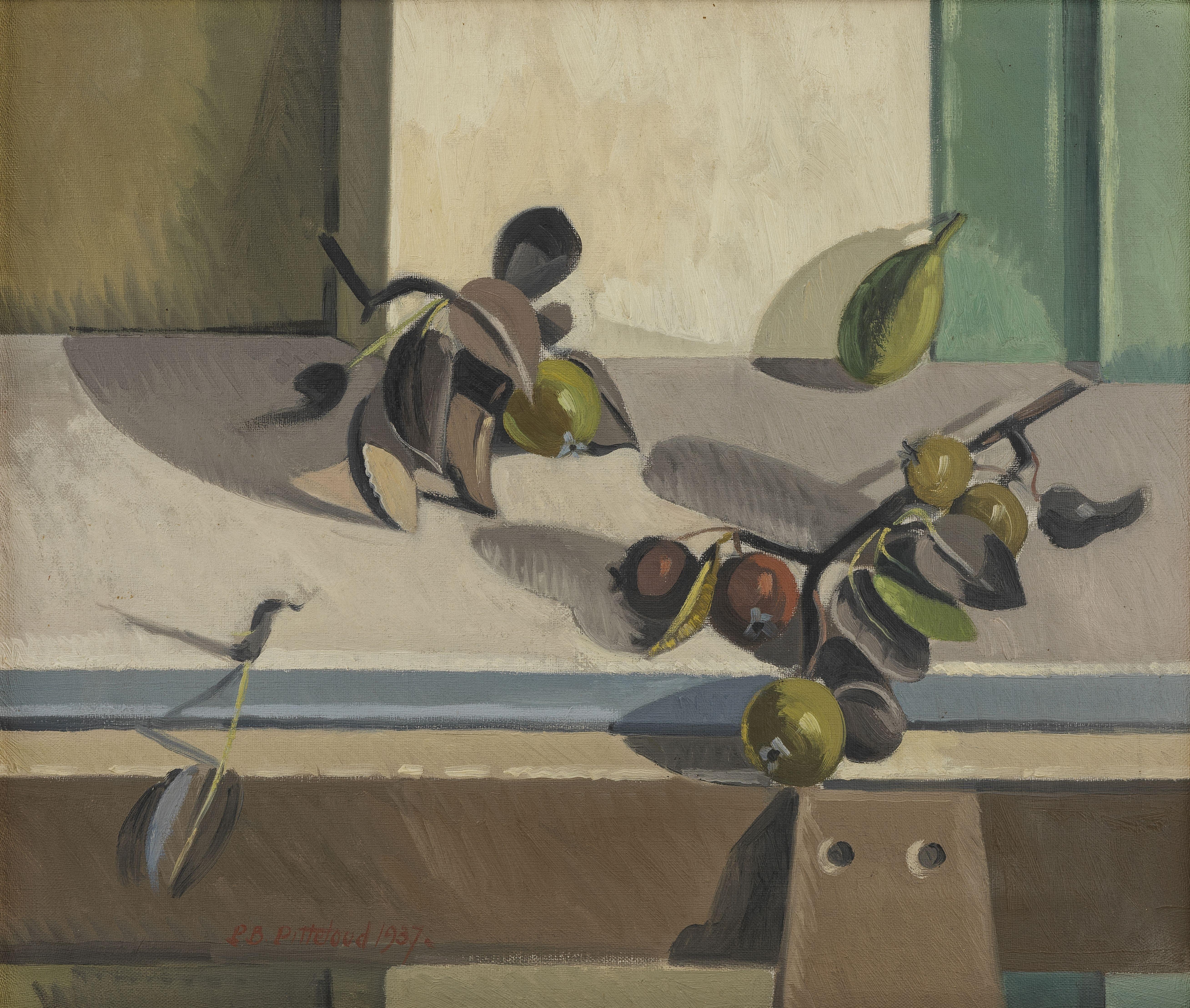 Nature morte aux branches de pommier, huile sur toile signée et datée 37, 46x55 cm