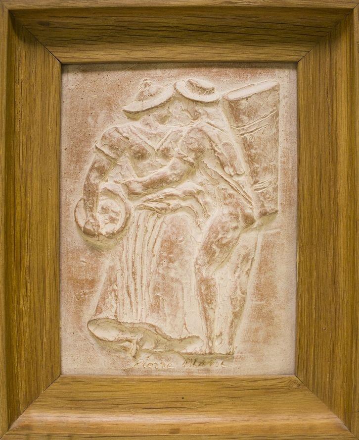 Couple de vignerons, bas-relief, terre cuite, 14 x 11 cm