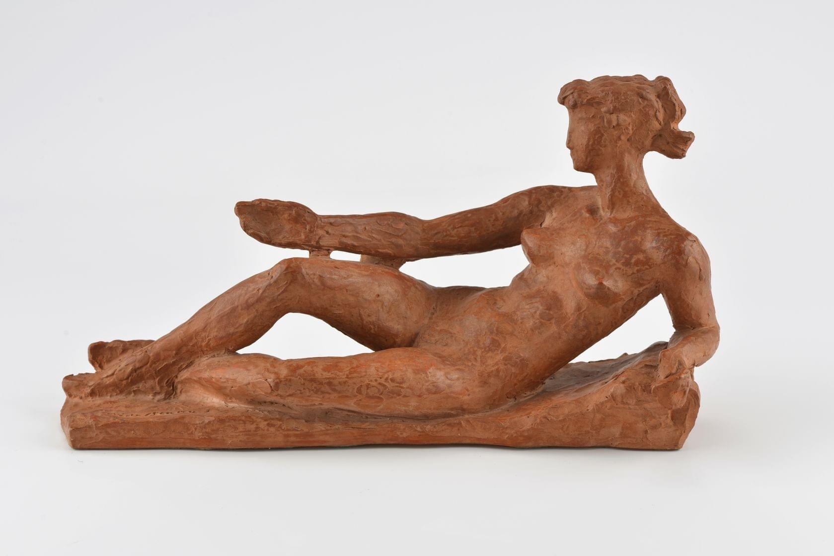 Nu assis, terre cuite ocre, signée et datée 48, 27x30 cm