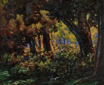 Lumière dans la forêt, huile sur toile, signée Böcklin, 60x70 cm