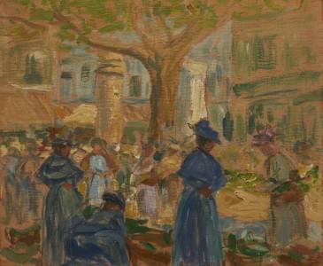 Place du marché à Carouge, huile sur carton, 44x54 cm