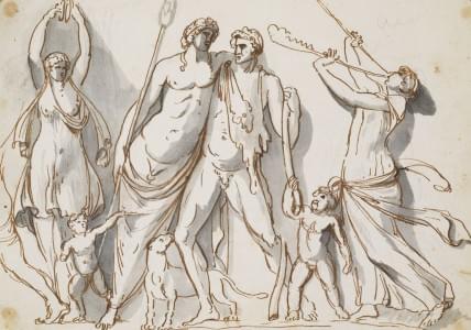 Le triomphe d'Hercule, et étude de bas relief, deux lavis d'encr...
