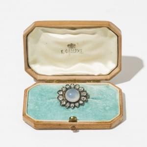 172. Broche ovale sertie d'une pierre de lune entourée de diamants