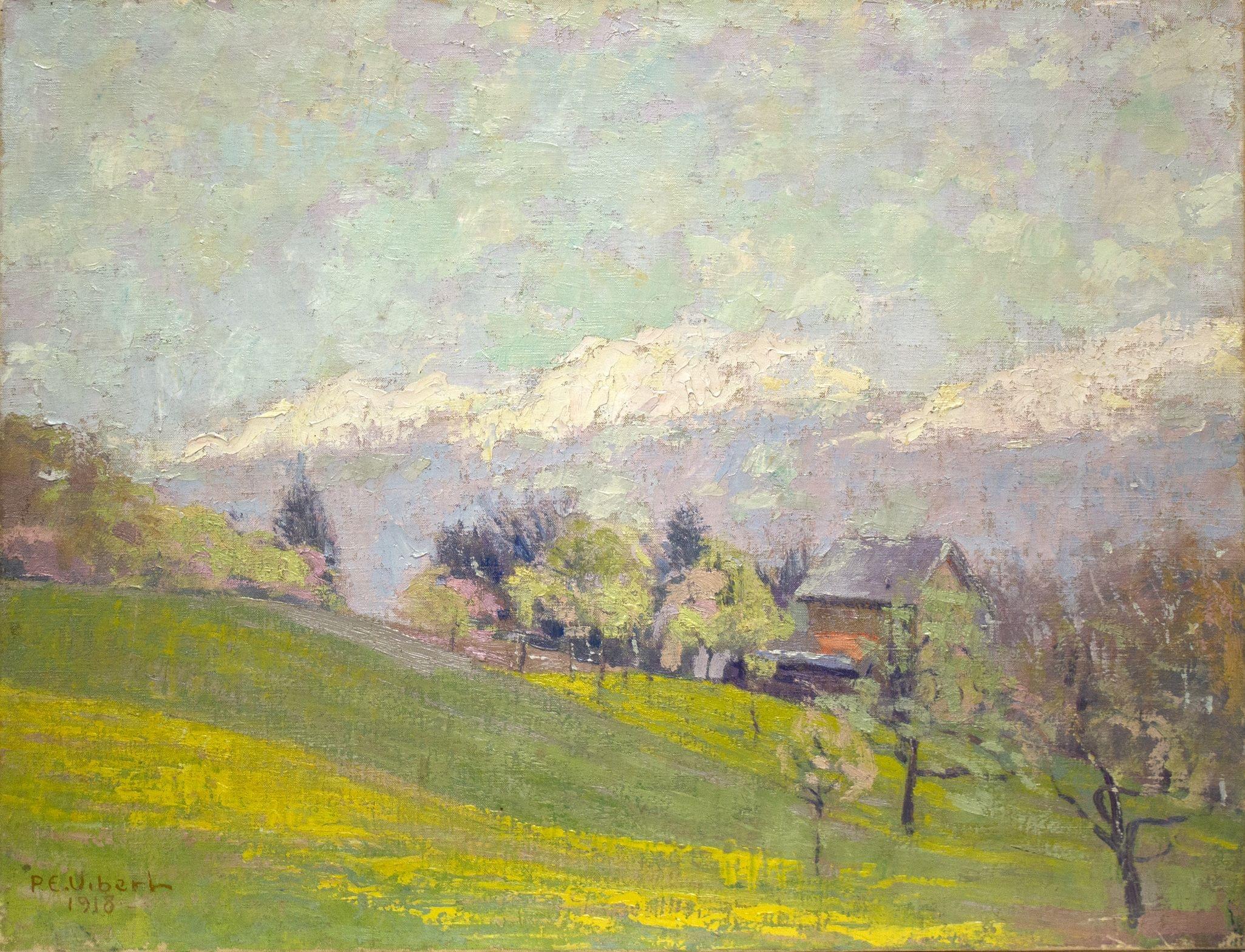 Paysage, huile sur toile, signée et datée 1918, 49x65 cm