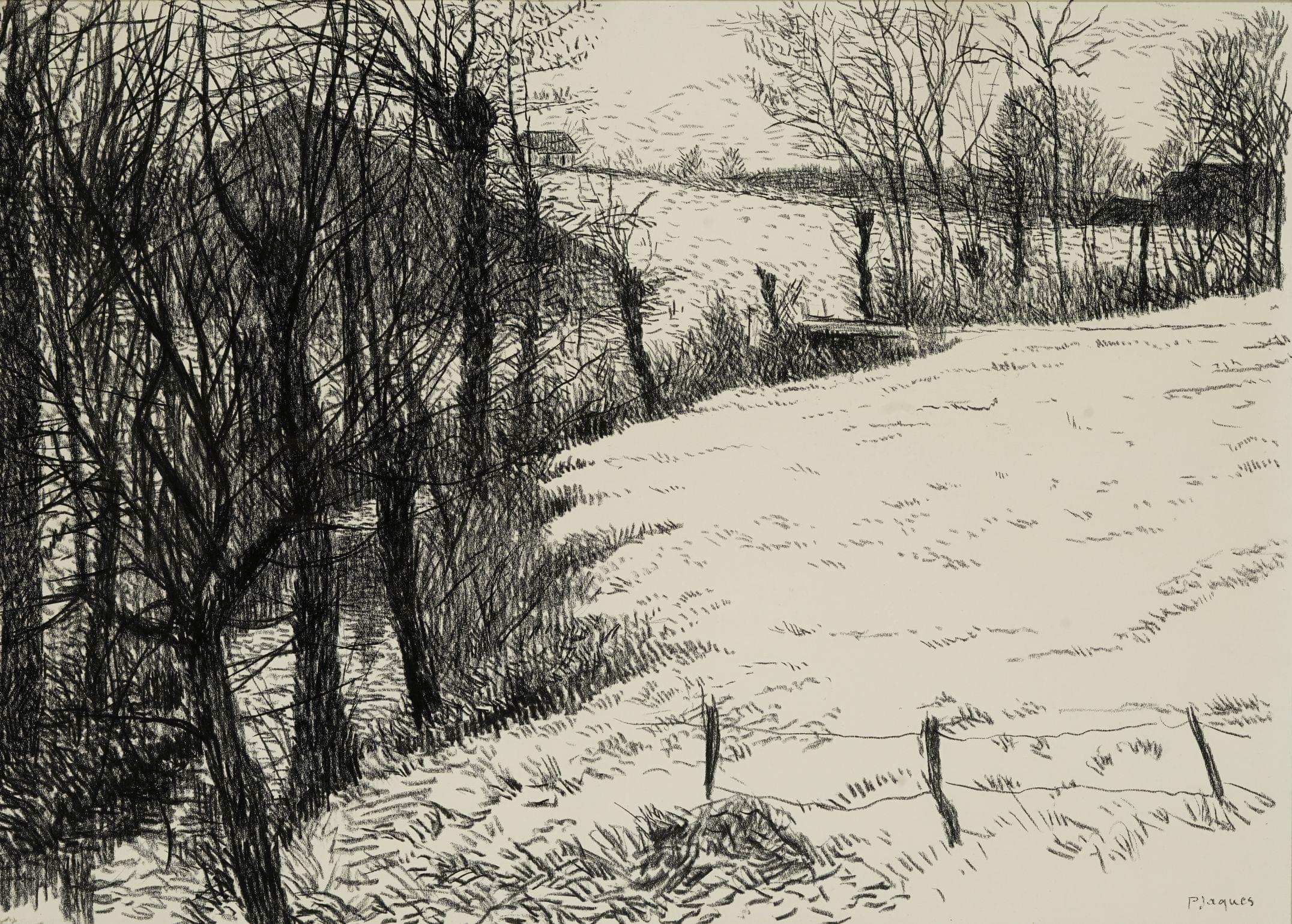 Intérieur cosy, encre sur papier, signée, 31x36 cm. Collection B...