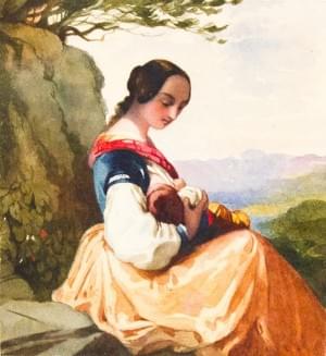 Halte nocturne des paysans près d'un feu, sous une voute antique...