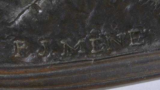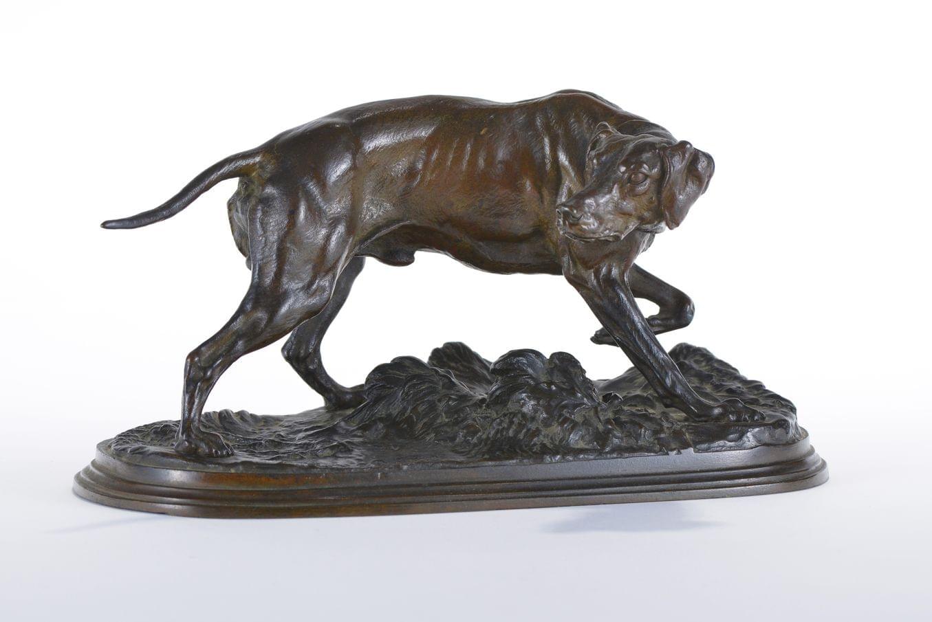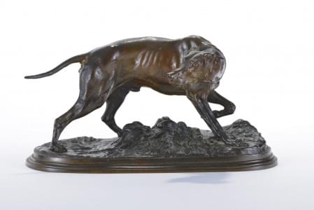 Chien de chasse, bronze à patine brune signé, éditeur Susse, 13x23x11 cm