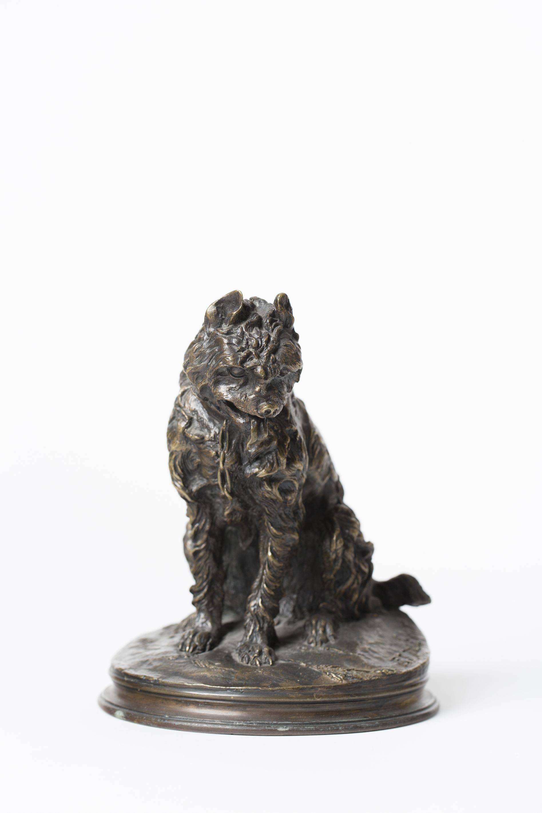 Chien griffon assis, bronze, signé, H 18,5 cm