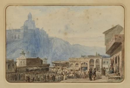 Vue de Tiflis (Tbilissi), aquarelle originale pour l'illustratio...