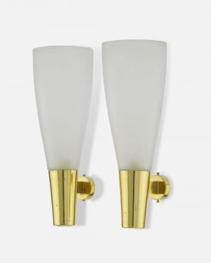 Paire d'appliques murales, laiton doré, verre sablé, H 29 cm