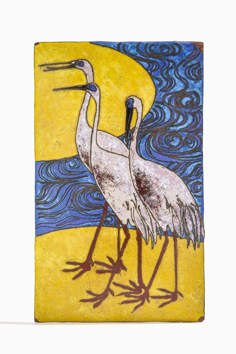 3475. Plaque à décor de grues, Japon, circa 1900