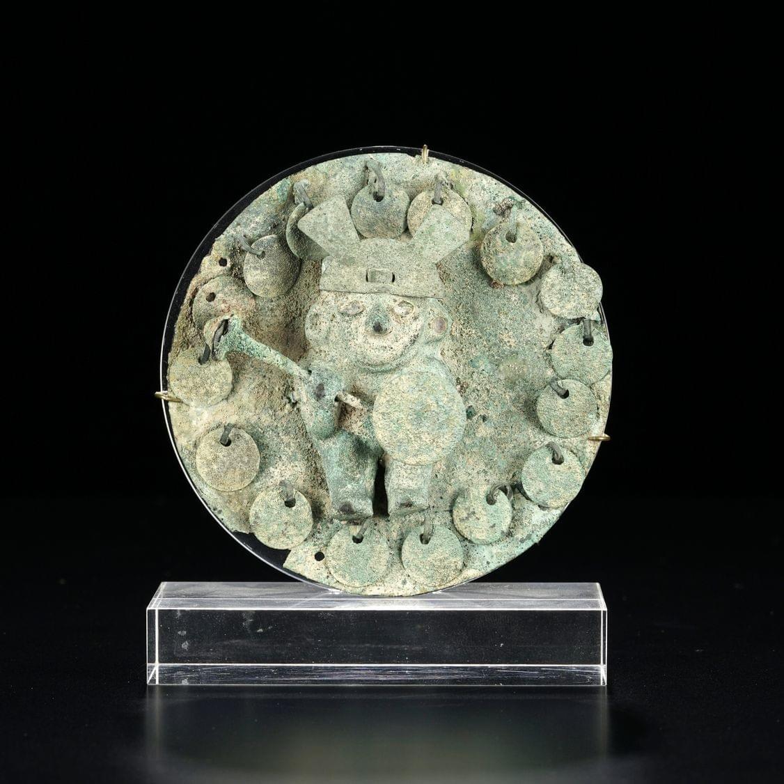 Bronze à patine verte à décor de dragons, D 14 cm