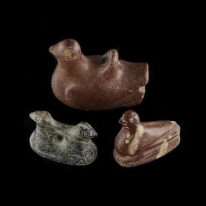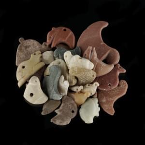 45. Environ 20 amulettes figurant des oiseaux, marbre, coquillage, c...