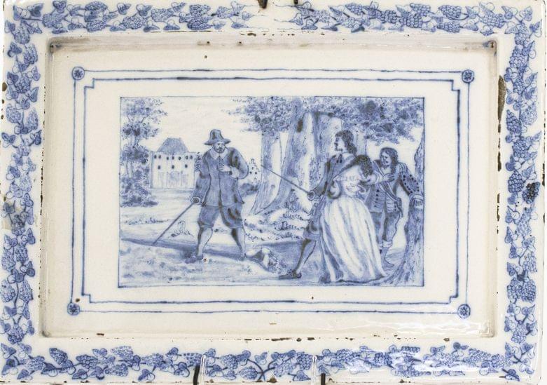 Porcelaine émaillée bleu blanc, à décor de fleurs et anses à têt...