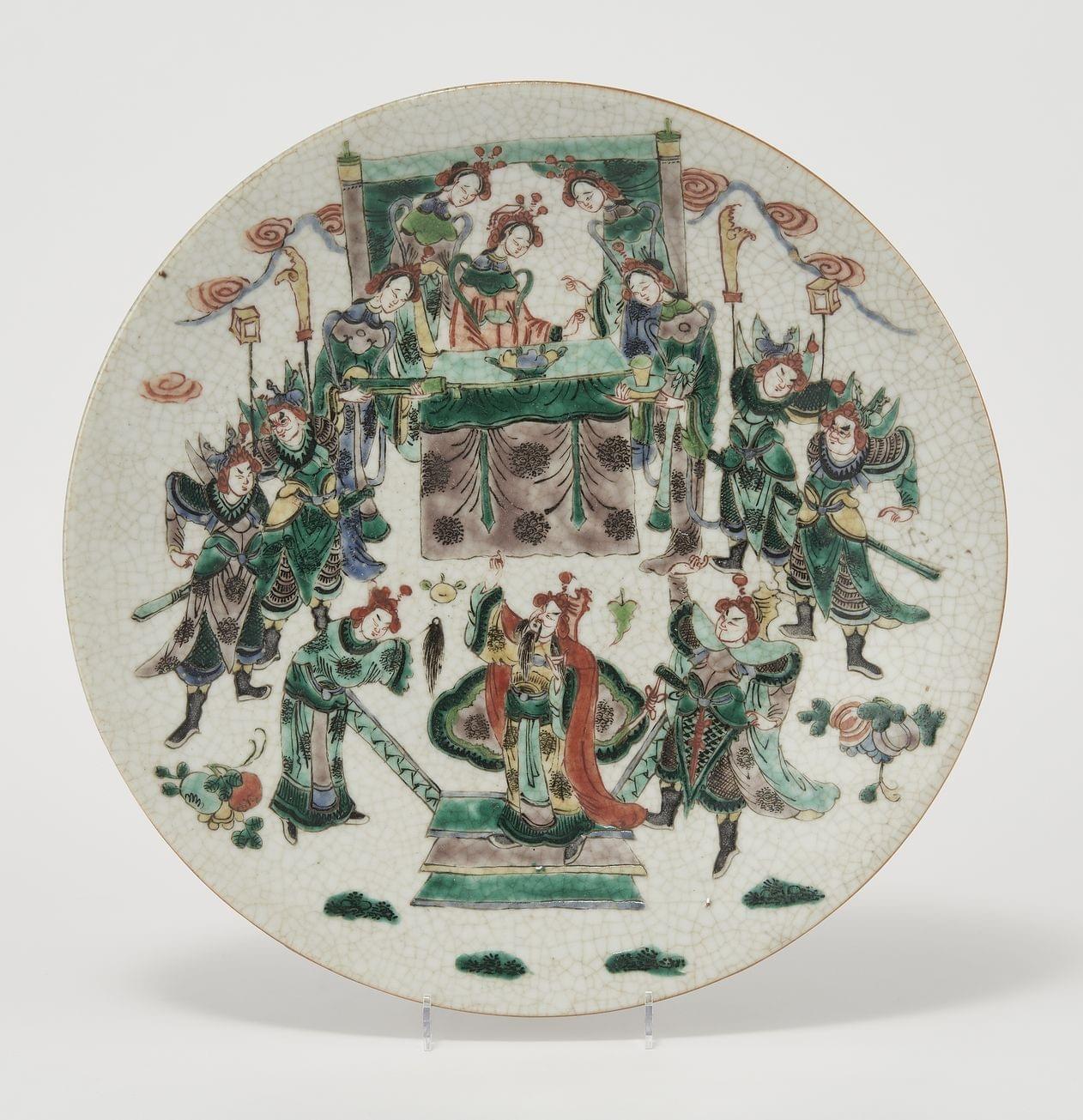 Porcelaine émaillée polychrome, à décor de scène de cour, D 34 cm