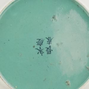 Porcelaine émaillée à décor d'un oiseau hoami et fleurs, D 24 cm