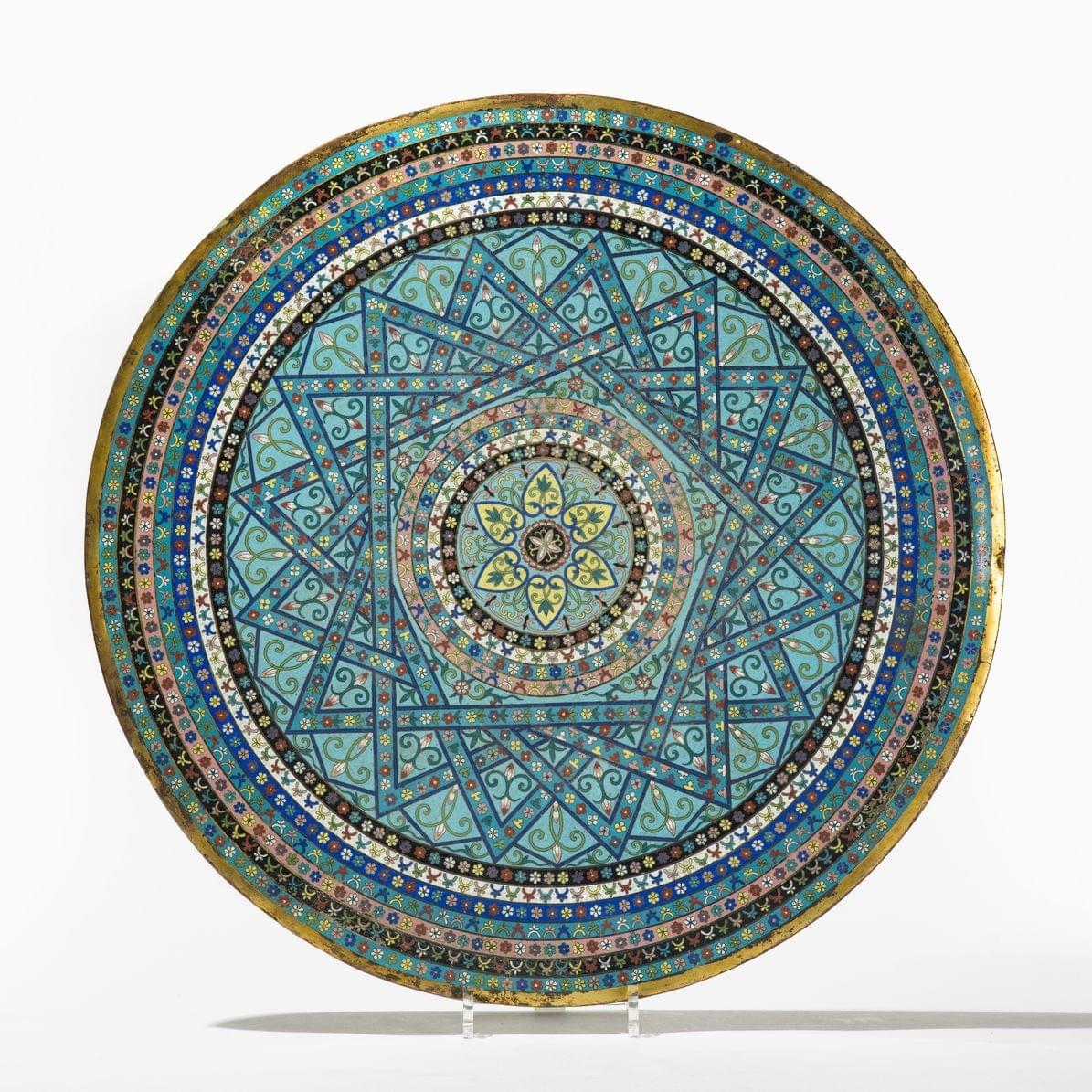A décor de motifs étoilés rayonnants et fleurons sur fond bleu azur, Chine, XVIIIe s pour le marché du Moyen-Orient (Empire Ottoman ou Qajar), D 55 cm