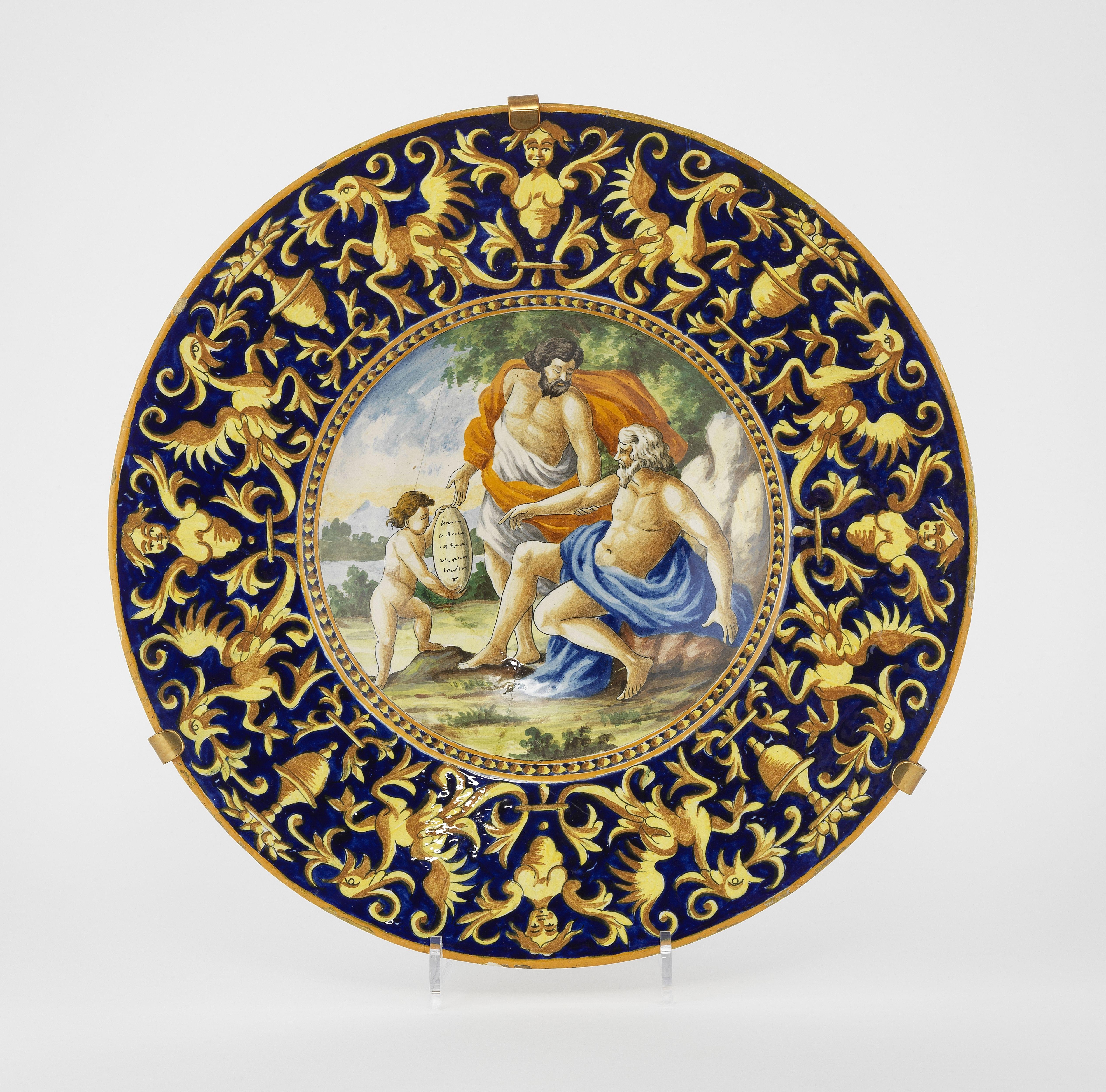 4472. Plat en majolique à décor historié, Italie XIXe s