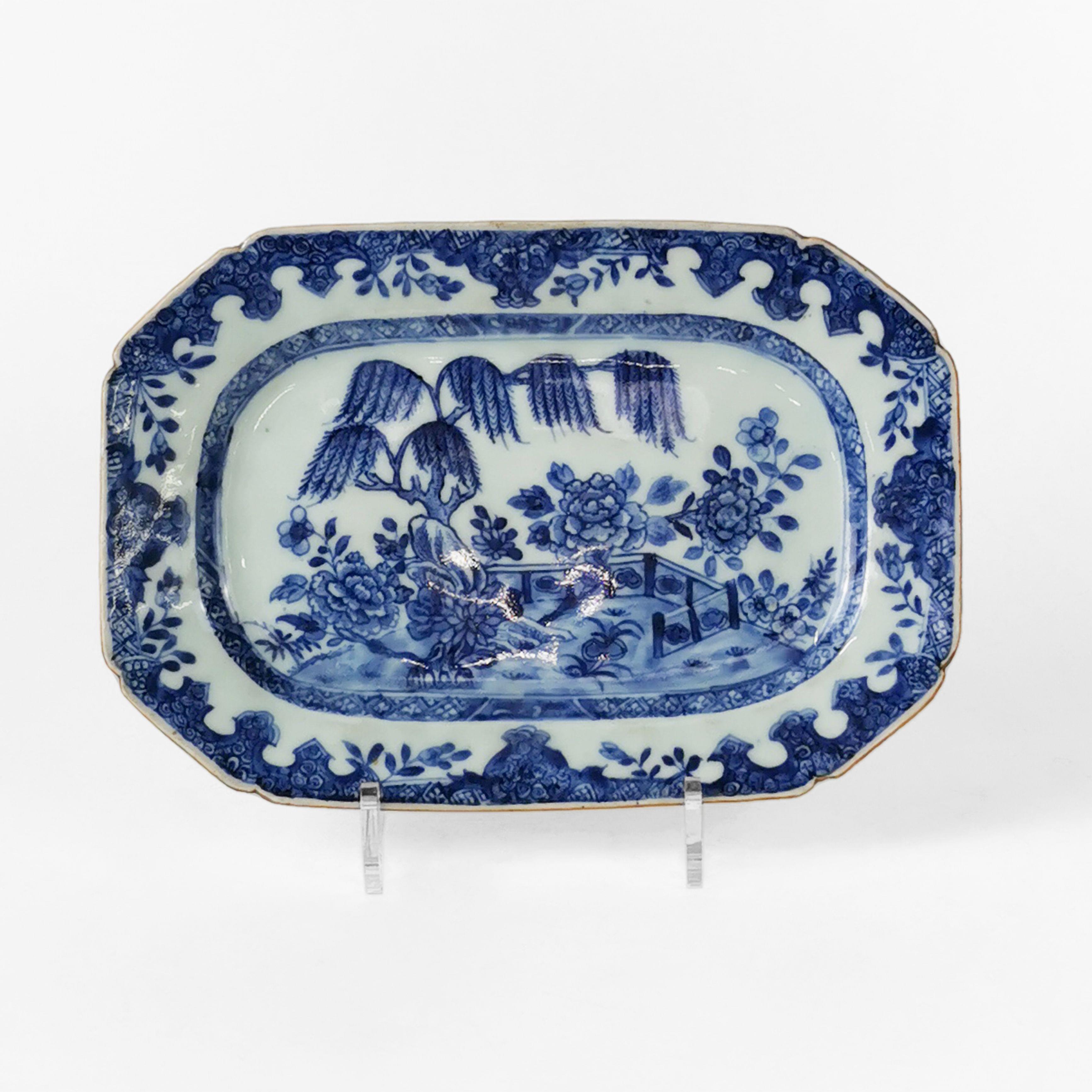 Porcelaine émaillée bleu blanc à motif de saule, 27x18 cm