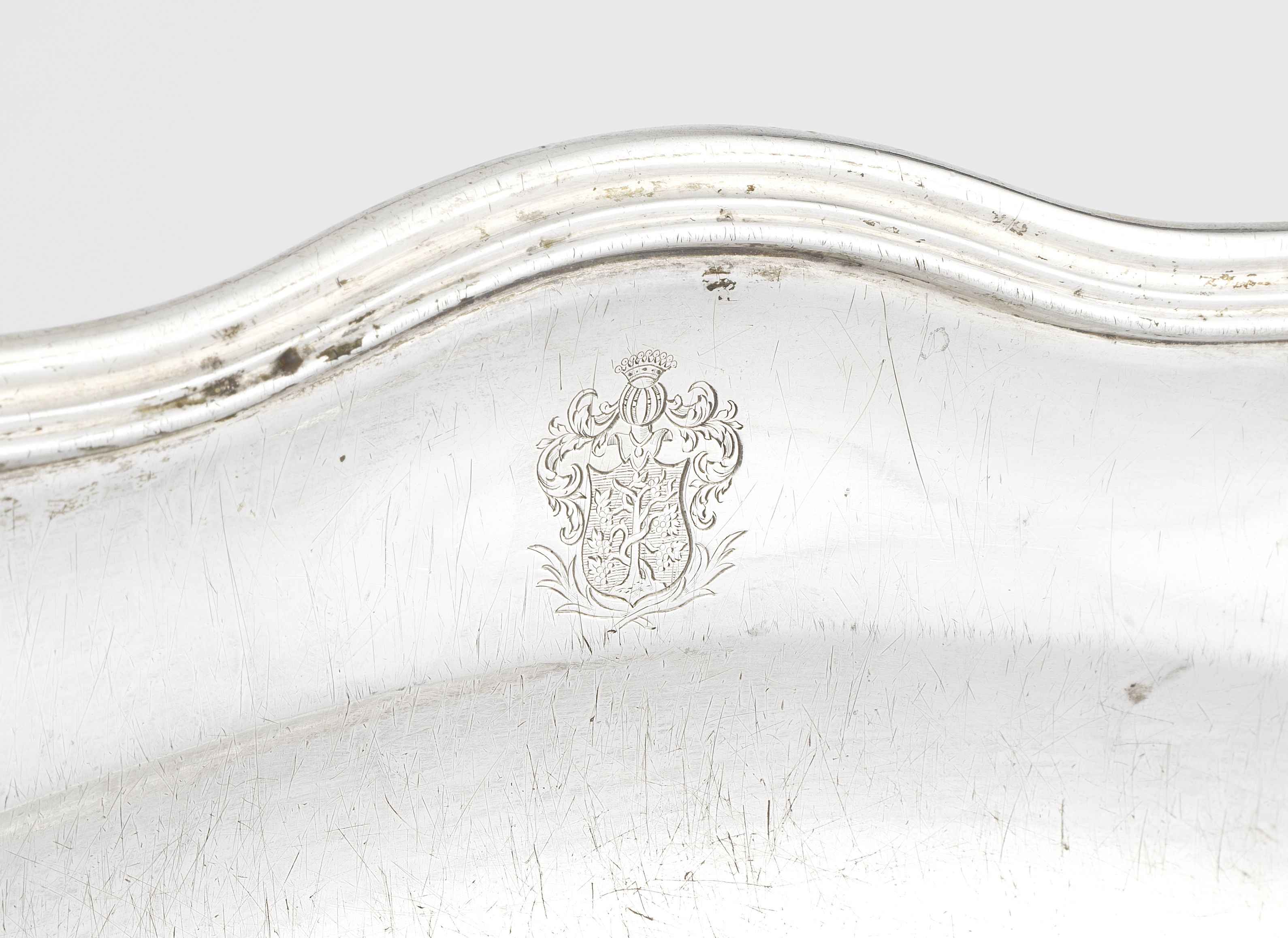 3987. Plat ovale armorié Sarasin et chiffré M.S. Rau