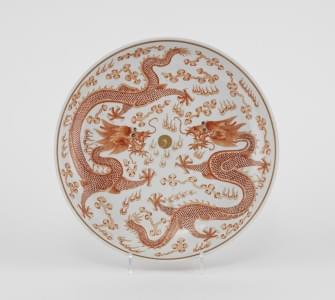 Porcelaine à motif de dragons poursuivant la perle sacrée, D 34...