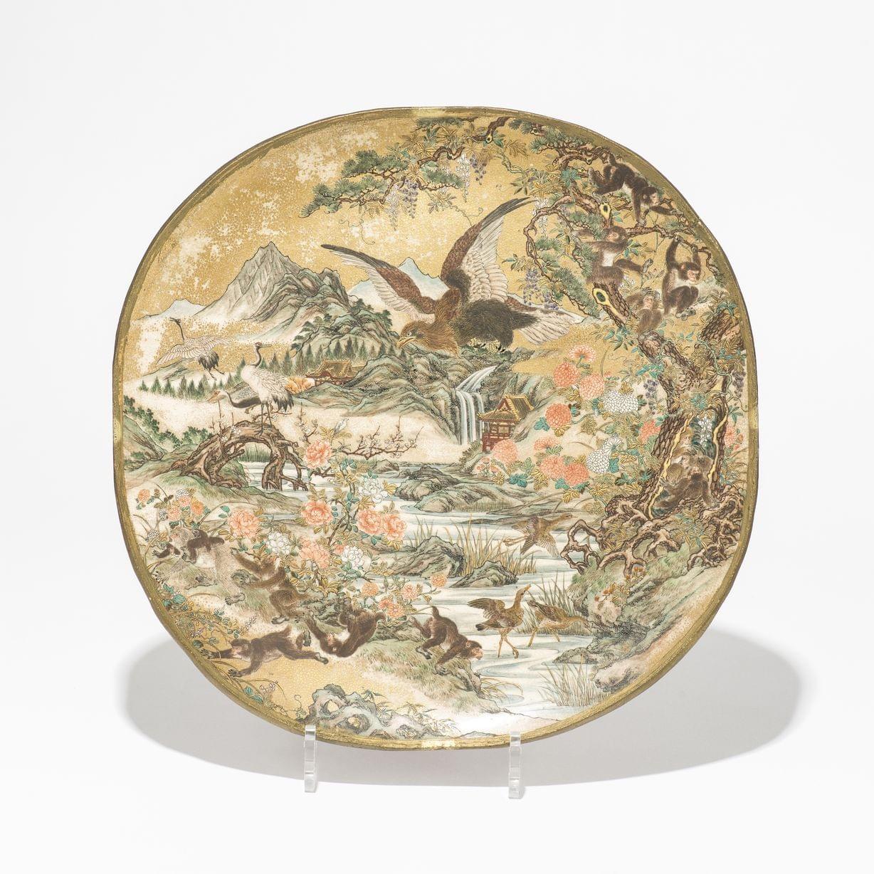 187. Plat à barbe à décor d'Amour dans un paysage et de couronnes de...