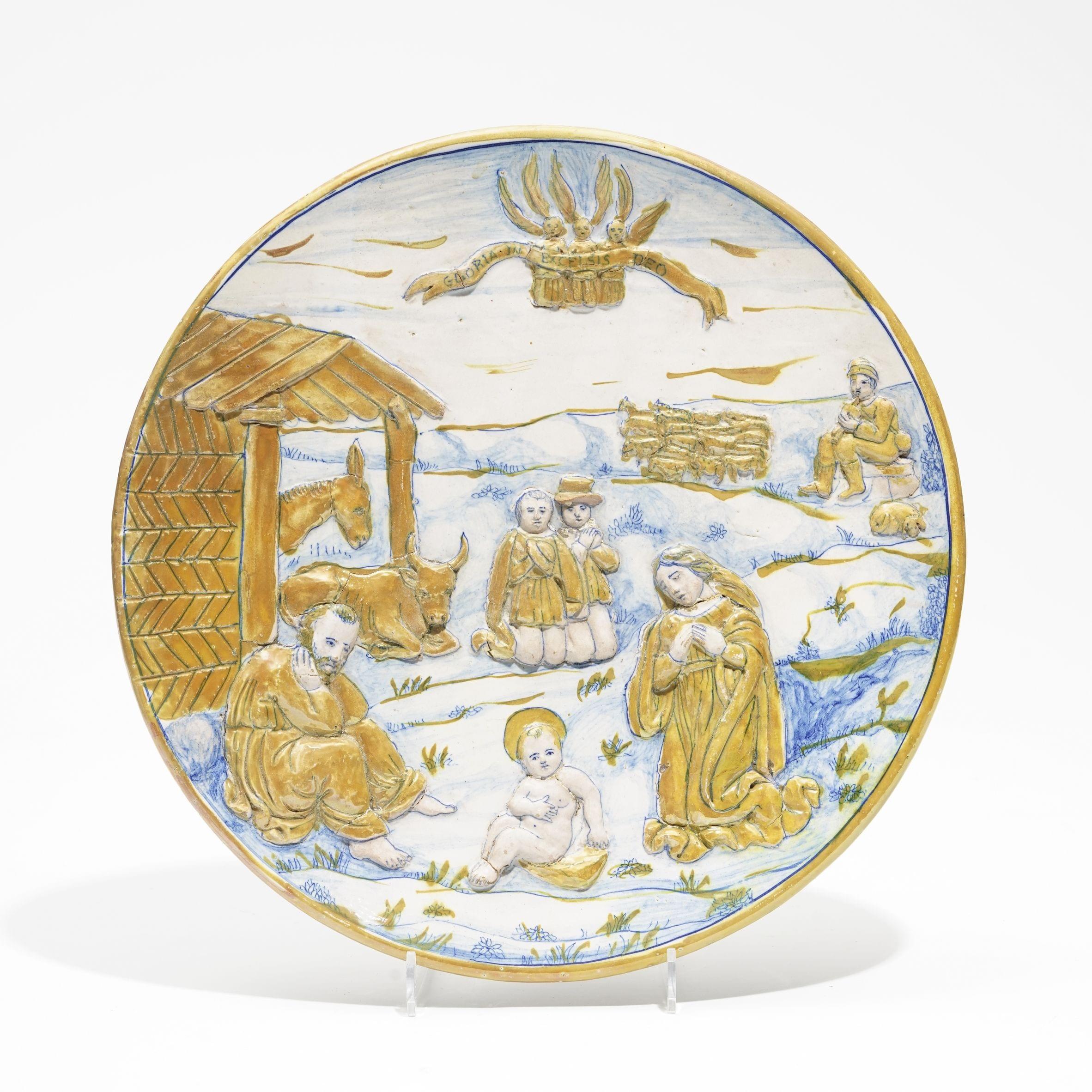 227. Plat rond à décor de l'Adoration des bergers, Italie fin XIXe début XXe s