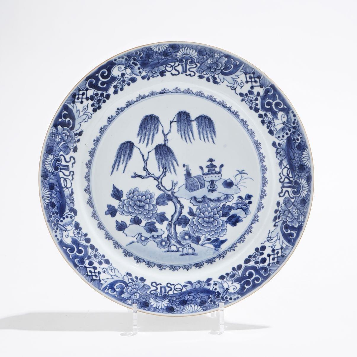 Porcelaine bleu blanc à décor d'un saule, D 32 cm