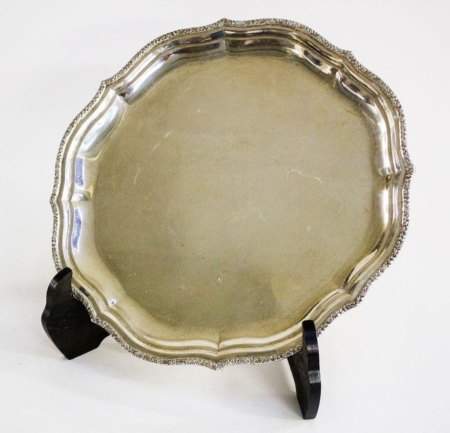145. Plateau de service ovale à bordure de feuilles d'eau