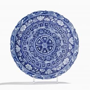 Porcelaine émaillée bleu à décor rayonnant, bords chantournés, D...