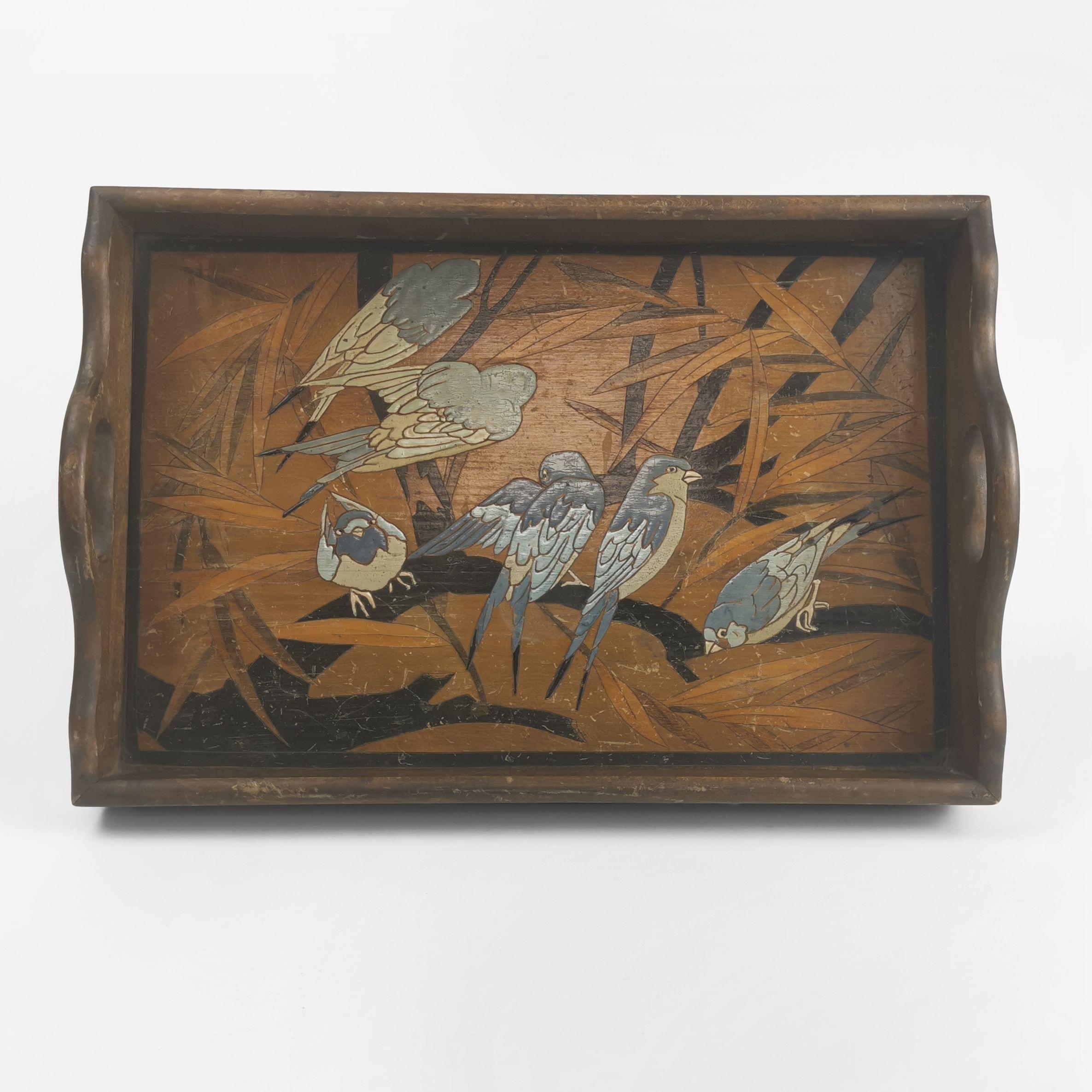 392. Corbeille carrée à décor blanc bleu de pivoine et anses volutes