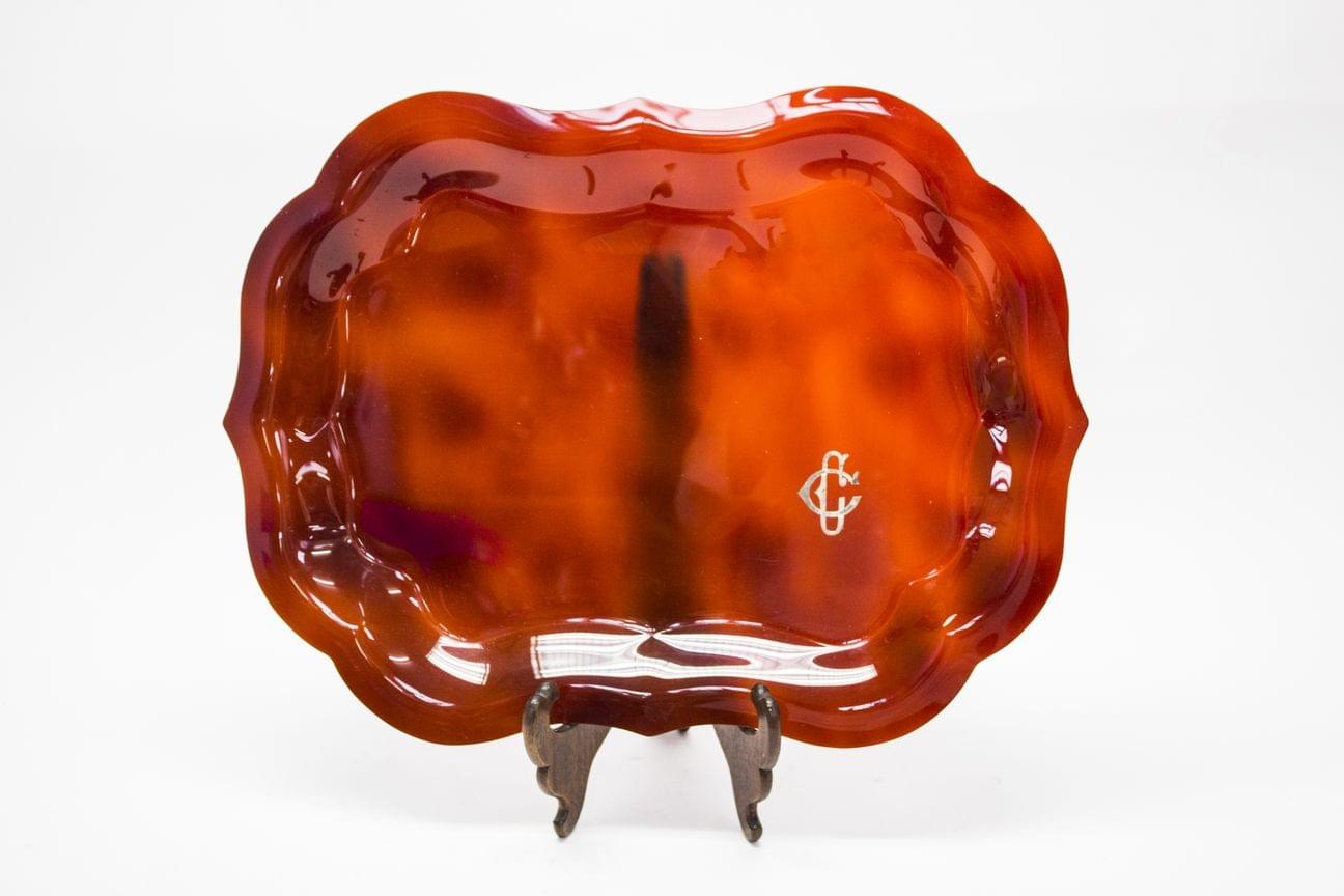 Bakélite ambre monogrammé GC en métal argenté, L 50 cm