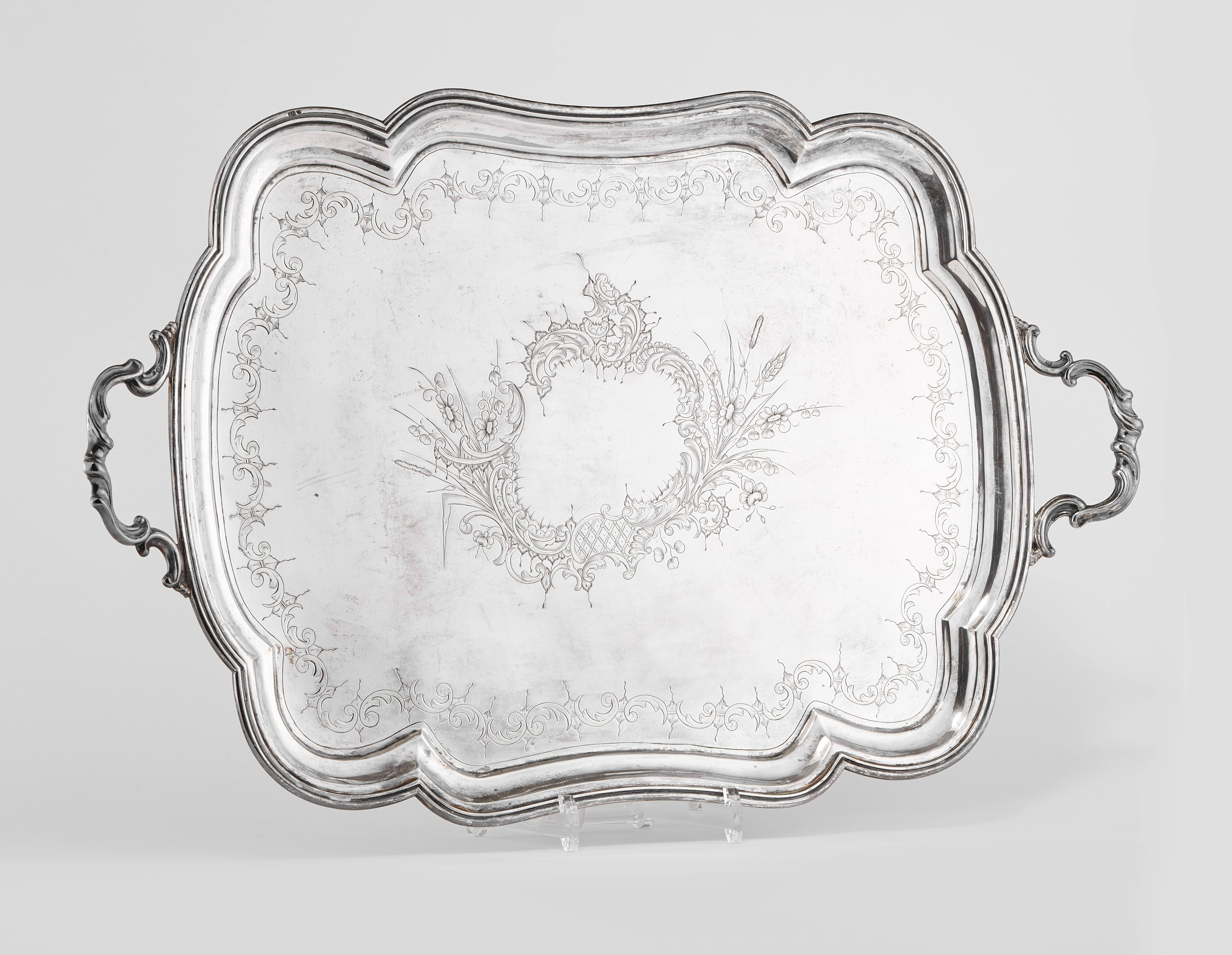 571. Plateau de service à décor de médaillon fleuri Rocaille
