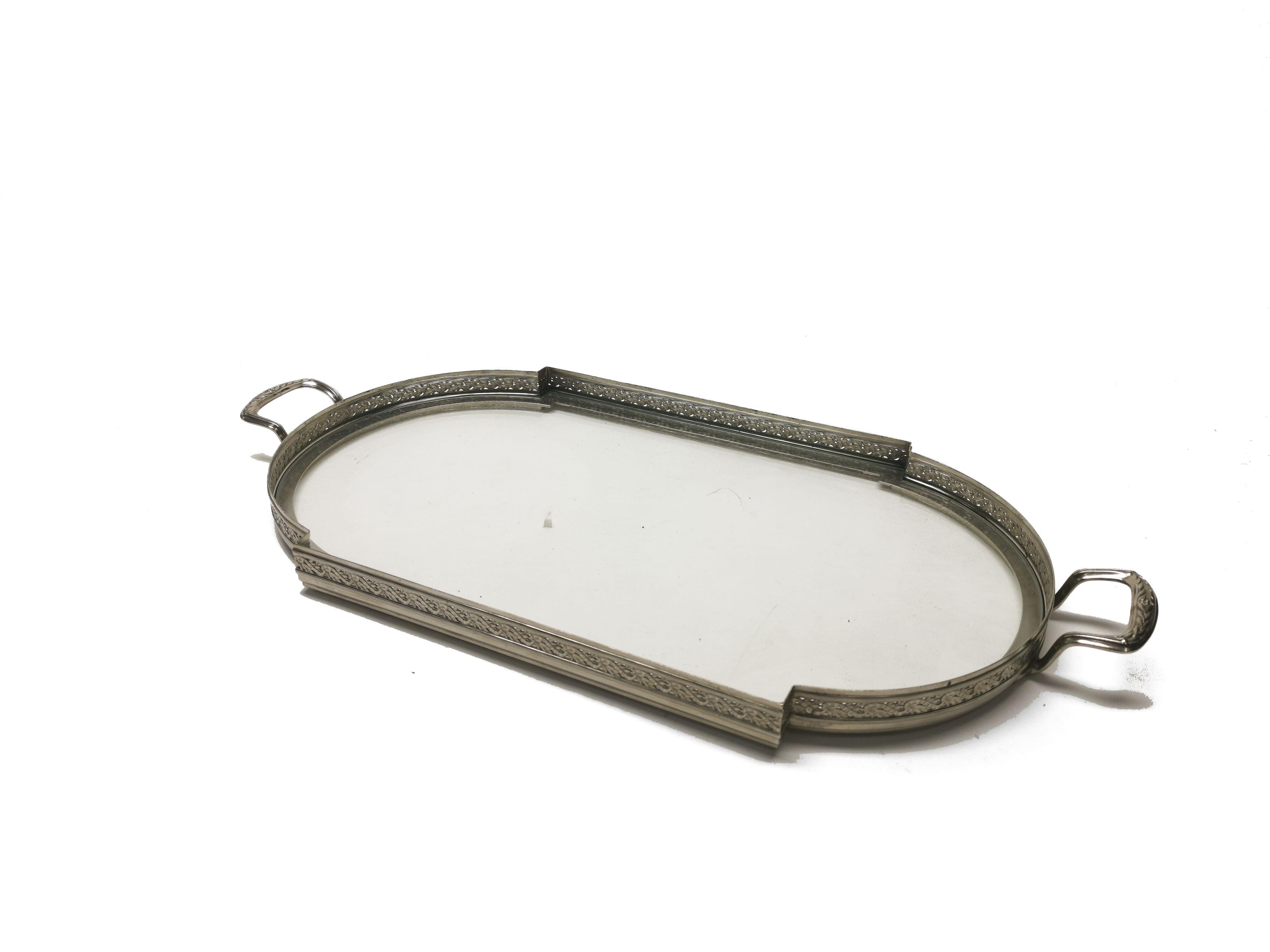 3679. Plateau de service à motif de ruban et feuilles de laurier