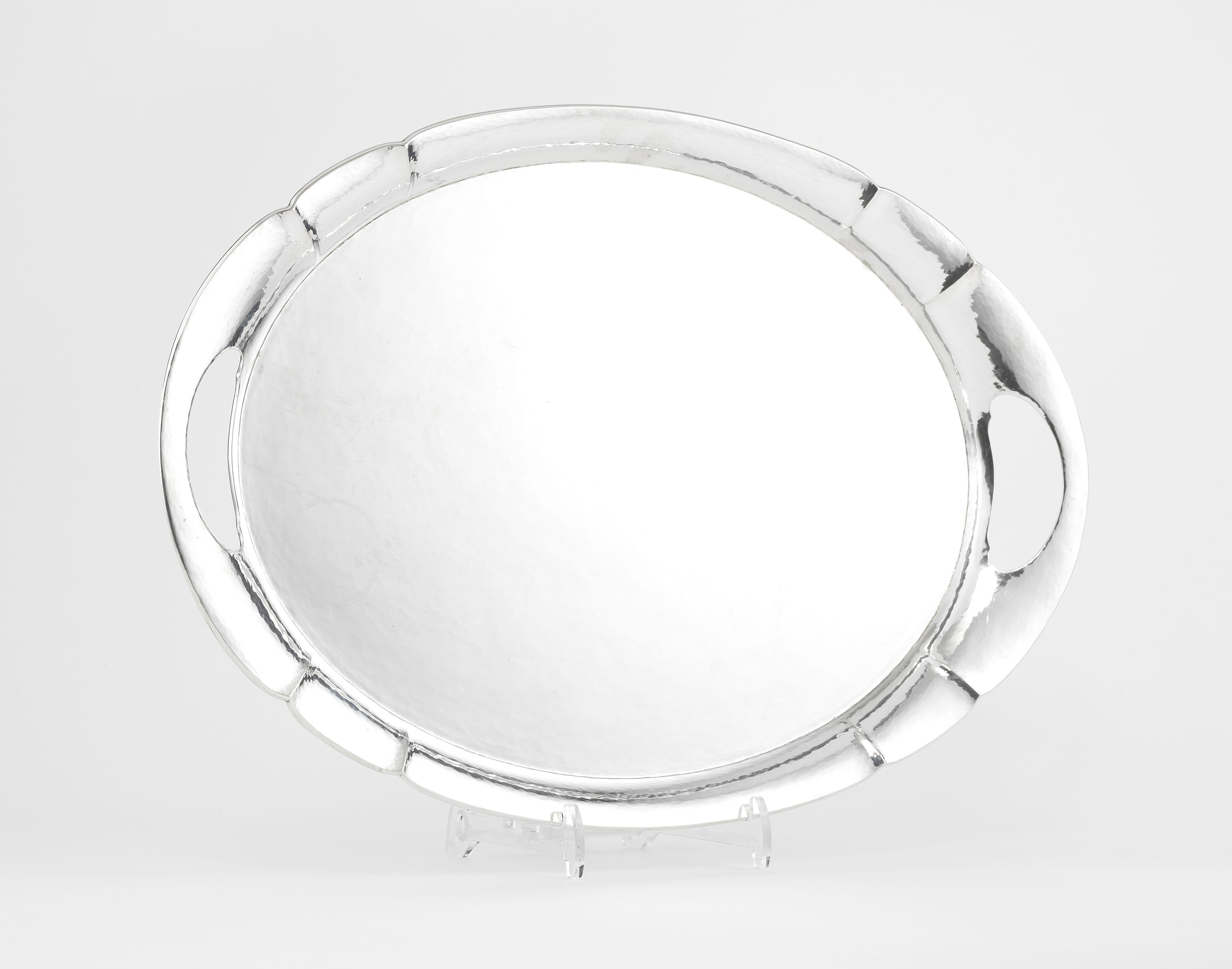 110. Plateau de service Art déco martelé à motif en pétales stylisés