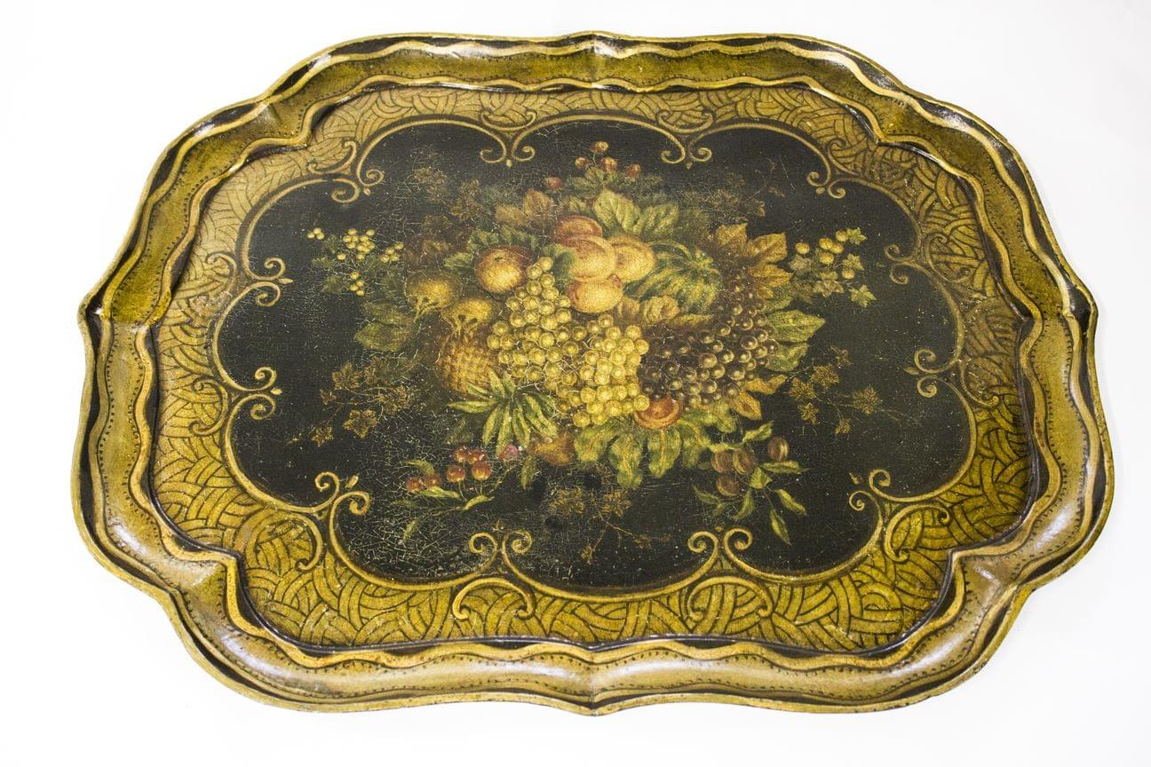 156. Grand plateau de service ovale à bordure ajourée de cannelures e...