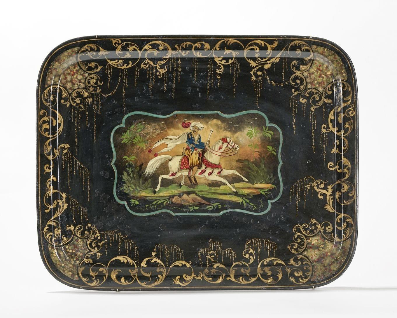 Tôle peinte et dorée à décor d'un cavalier turc, 58x72 cm