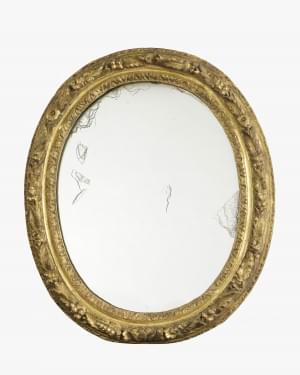 Bois sculpté et doré à décor d'une frise de feuilles, monté en m...