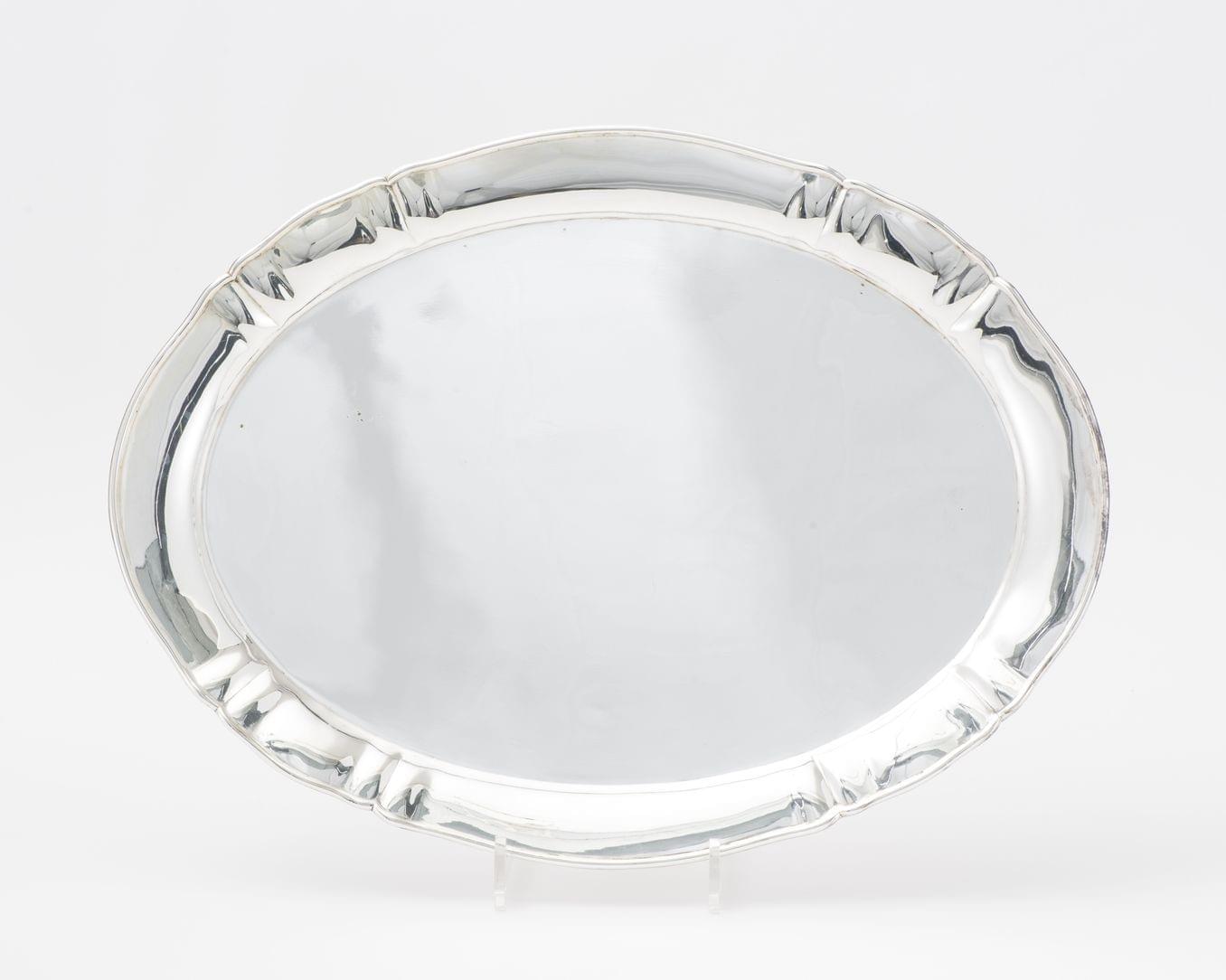176. Plateau ovale martelé Art Déco orné de quatre volutes