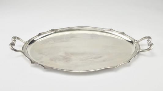 145. Plateau de service ovale à bordure de feuilles d'eau
