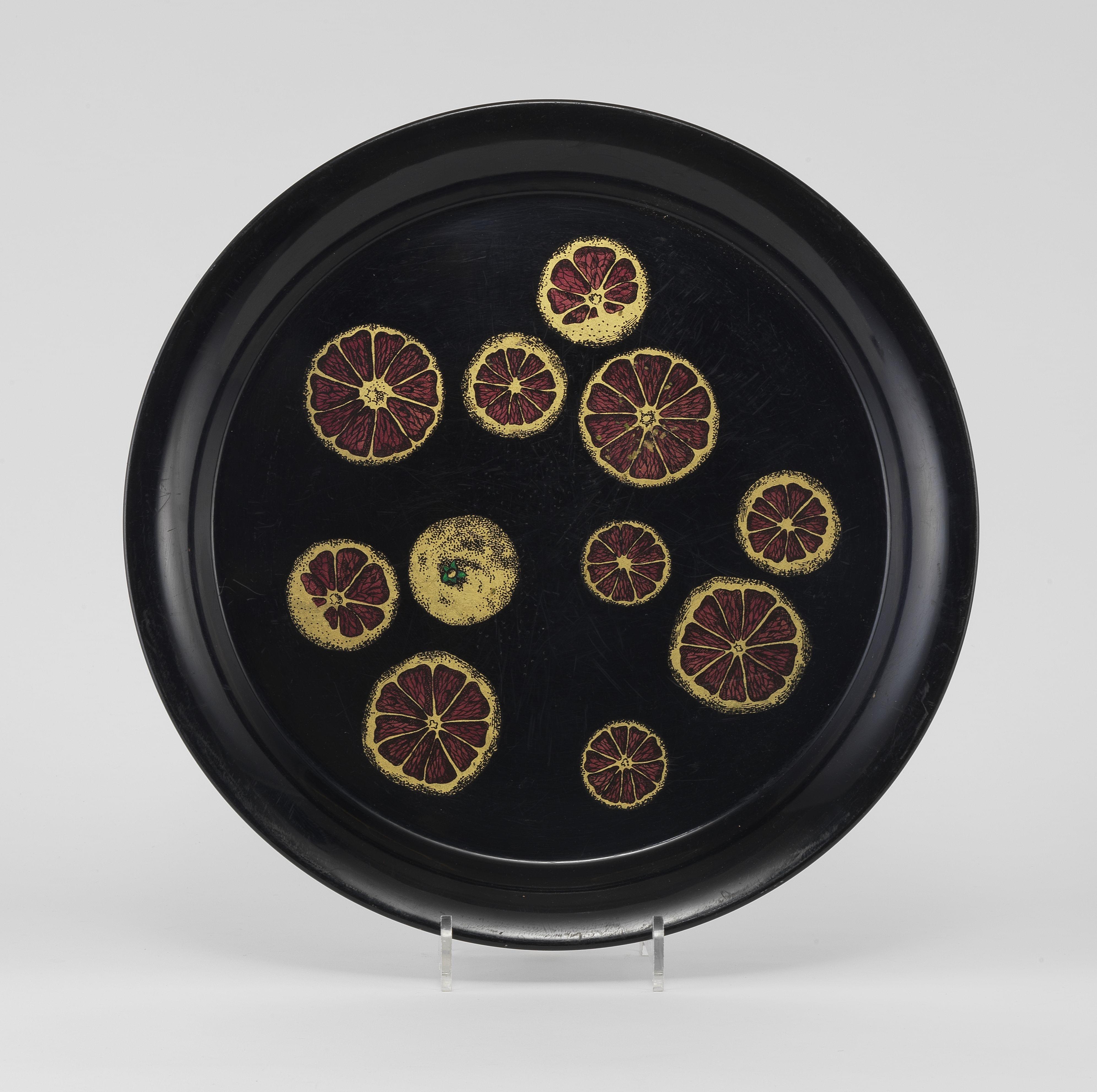 Laque de cinabre rouge à décor en bas-relief de personnages dans...